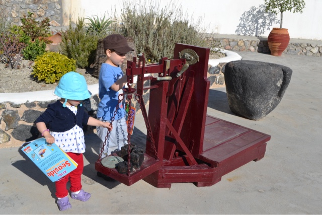 We botched the bus times for taking the Perissa bus to Santo Wines so we stayed in Fira for the sunset and went to this overpriced bar called Character with an amazing view. The kids shared a milkshake for two: